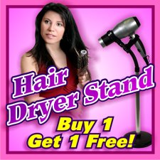 This amazing styling stand holds hair dryer, leaving both hands free for styling with brush and comb. It's the third hand you always needed! Adjusts from 27 in. to 39 in. for use on the floor or counter top. Includes a Velcro strap to secure odd sized hair dryers, too. Flexible neck bends to any angle. Countertop or floor use. Easily style front and back.